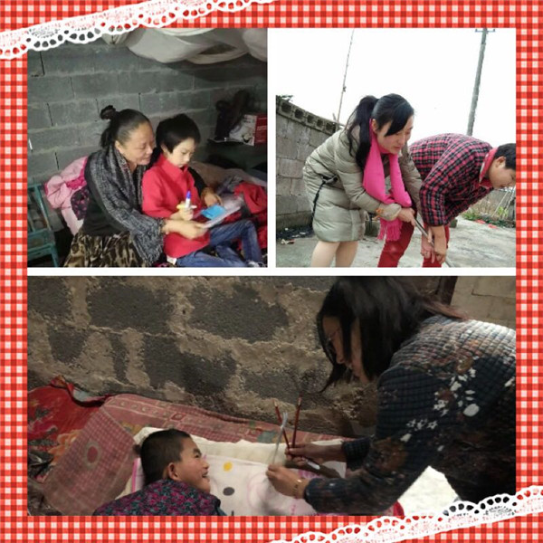 他们把课堂搬到了最需要的地方。或客厅、或卧室、或庭院,只要是能有一张书桌、一块平地足矣。他们将提前精心准备的教学内容传授给这些最渴望知识、渴望关怀的孩子们。俯首、弯腰,或蹲、或站,时而谈笑风生、时而抑扬顿挫,一讲就是三个课时,每个孩子在他们眼中就是整个世界。他们给孩子们带来的是知识和成长的动力,给家长带来的是希望和寄托,而带走的却是一身疲惫。累并快乐着是对这份工作最好的诠释。他们用真情呵护着折翼的天使,他们用热血解救着痛苦的家庭。他们是可爱可敬的特教人。