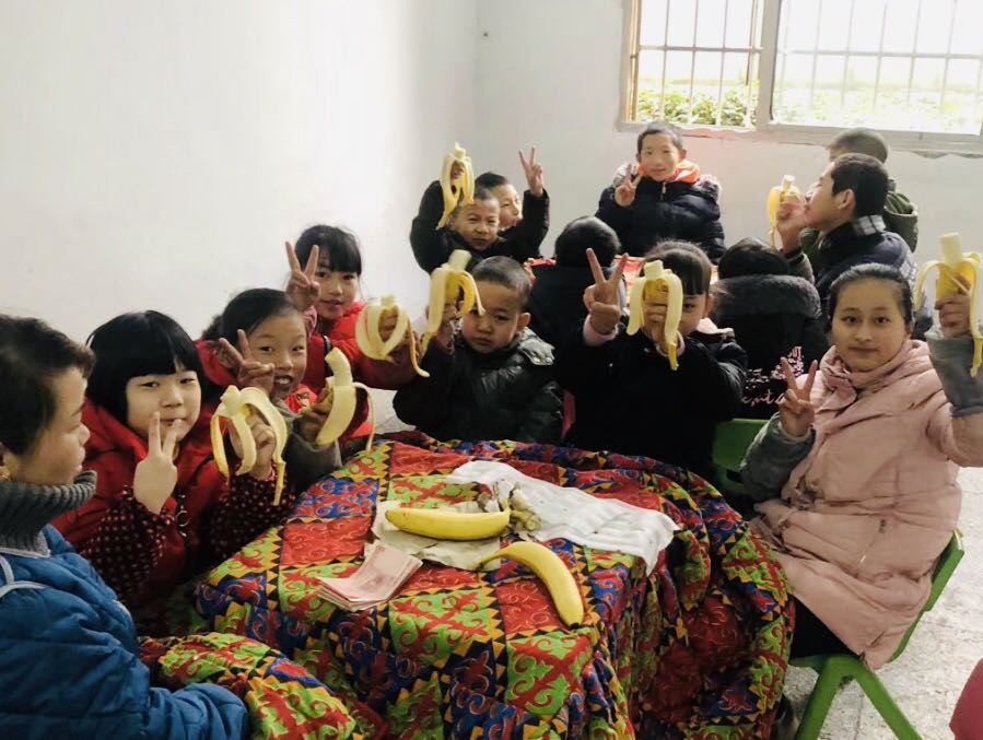 孩子们吃着刘女士买的水果