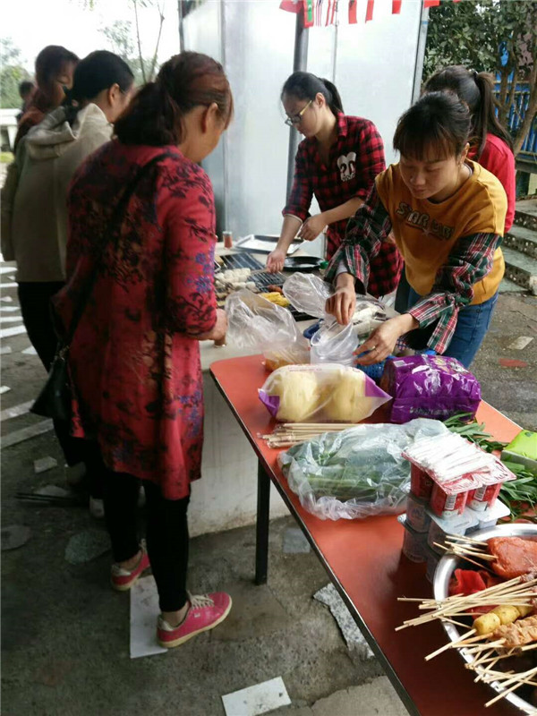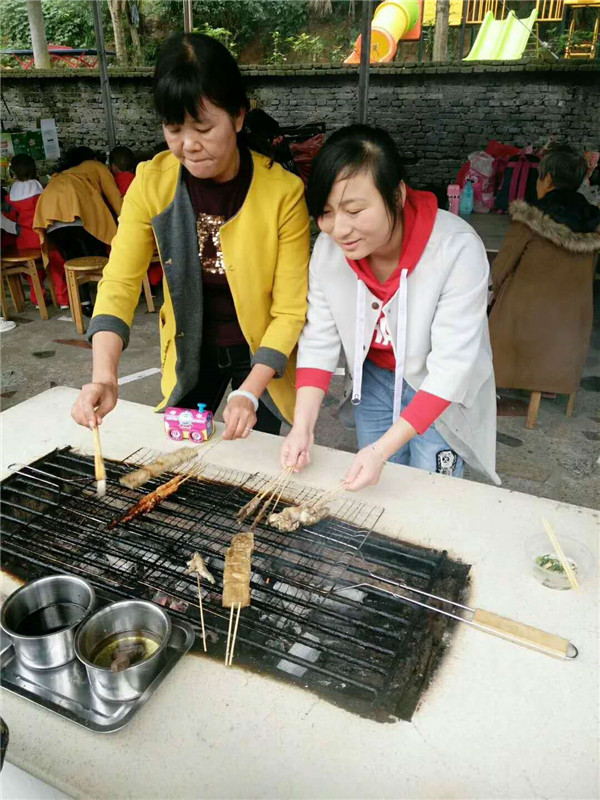 到达目的地后,小朋友朝滑滑梯飞奔而去,教师和家长都忙开了:有的切菜,有的分发碗筷,有的照看孩子,有的串菜等等。一切准备工作就绪后,三个班级开始分班进行烧烤,小朋友看着烧烤架上美味的食物垂涎欲滴,家长朋友和教师们互相切磋手艺,好不热闹!烧红的炭火和大家脸上洋溢的笑容相映衬,真是一个美景!随着炭火慢慢的燃尽,活动渐渐地接近尾声,收拾好未烤完的食材,要返程了,小朋友们一路上兴奋的说着今天的收获。