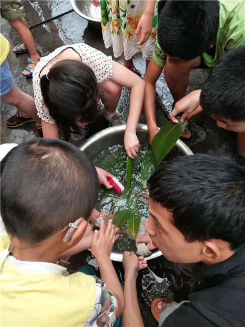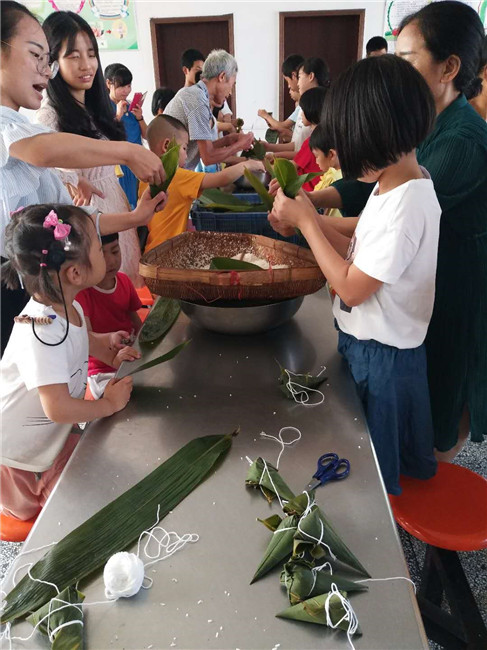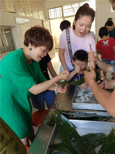 6月14日上午,按照学校端午节活动方案的统一部署和安排,由各个班级根据要求纷纷开展了内容丰富,形式多样的活动。培智部学生在班主任老师的带领下,首先观看有关“端午节”来历的视频,由老师讲解,端午节的赛龙舟、吃粽子、佩香囊、插艾蒲、采百草等习俗在民间广为流传。然后由老师带领学生们去食堂欣赏聋教、康复部师生包粽子活动。组织学生观察粽子,知道了粽子有很多种;吃粽子,把吃粽子的感受用语言说完整、流畅地与同伴交流。通过活动的开展,孩子们都知道了农历五月初五是一家人团聚的日子,知道了在端午节包粽子、吃粽子及端午节的其它习俗。看!聋教部哥哥姐姐们在老师帮助下学习包粽子,包了一大堆粽子,他们看着自己创造的劳动果实,吃到嘴里一定会更加美味香甜!
