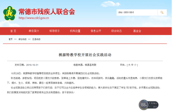 项目落实期间,学校加强了宣传力度,在常德残联、尚一网、桃源教育、桃源政府网、湖南文先在线等发表通讯信息10余篇。