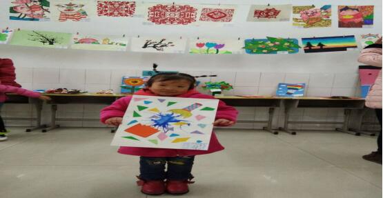 刘小涵,除了运动、沟通、生活自理等方面发展良好外,尤其在语言方面,发展得非常迅速。图为12月24日,刘小涵参加学校美术作品展。