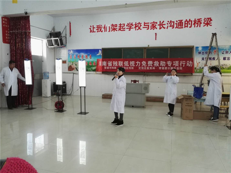 栏目导航 Navigations ● 学校概况 ● 校园新闻 ● 爱心社区 ● 教育教学 ● 教工之家 ● 学生天地 ● 阳光服务 ● 学校公告栏 ● 校园风采 您的位置: 首页>校园新闻 常德市爱尔眼科免费低视力救助 作者:管理员 来源:本站原创 发布时间:2017-11-01 浏览次数:1068 【字体: 小 大】 [关闭] 10月31日,常德市爱尔眼科来到桃源特殊教育学校进行免费视力检查和低视力救助。全校师生积极配合,各部门依次按进行了视力检查。爱尔眼科的医生护士们耐心为孩子们如何进行视力检测,以及后期如何对视力进行康复训练。对视力须要矫正的何旅清等同学免费送上了低视力矫正器。通过本次视力检查,让学生具有了一定的健康用眼的意识,少看电视、少玩手机;写作业和看书时,眼睛与书本要保持一定的距离,坐姿也要正确。(张艺撰) 分享到: 微信扫一扫:分享 微信里点“发现”,扫一下二维码便可将本文分享至朋友圈。