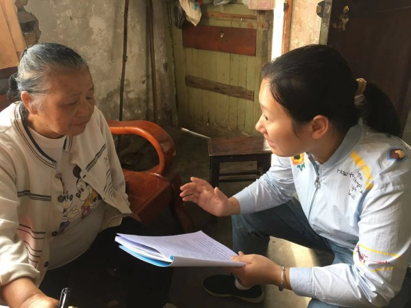 吴海燕老师在给刘静的奶奶宣传党的政策
