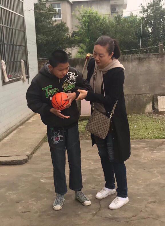 覃双文,15岁,肢体和智力都有问题,属于多重残疾,何芳老师对其进行运动训练,手把手训练孩子如何抛接球,提高孩子的四肢运动和身体协调能力,及时表扬,并给予奖励,以提高孩子的学习积极性和参与意识。