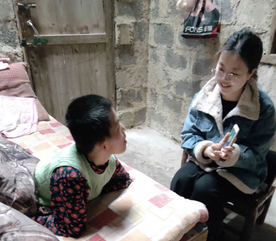 听着杜思源老师手机里播放的节奏,孩子脸上绽放开心的笑容。多重障碍学生王好好,活动空间就是这张床,年迈的奶奶无能为力,与他相依为命,平时无法出门接受教育。老师们通过手机软件,将律动课送到了王好好的家中。